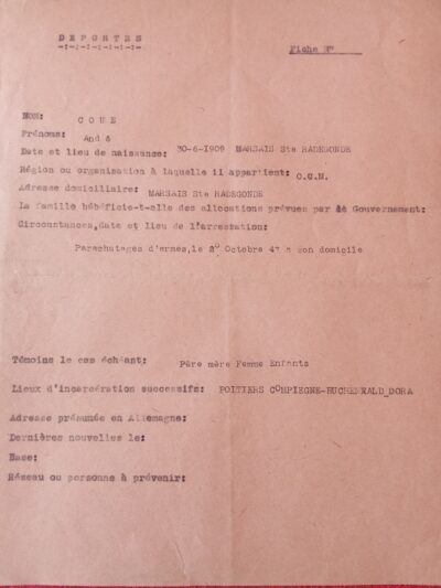 DO193 – Certificat de déportation d’André Couéadmin2026-03-09T11:24:34+01:00 Télécharger le document (jpg) FacebookXLinkedInWhatsAppEmail
