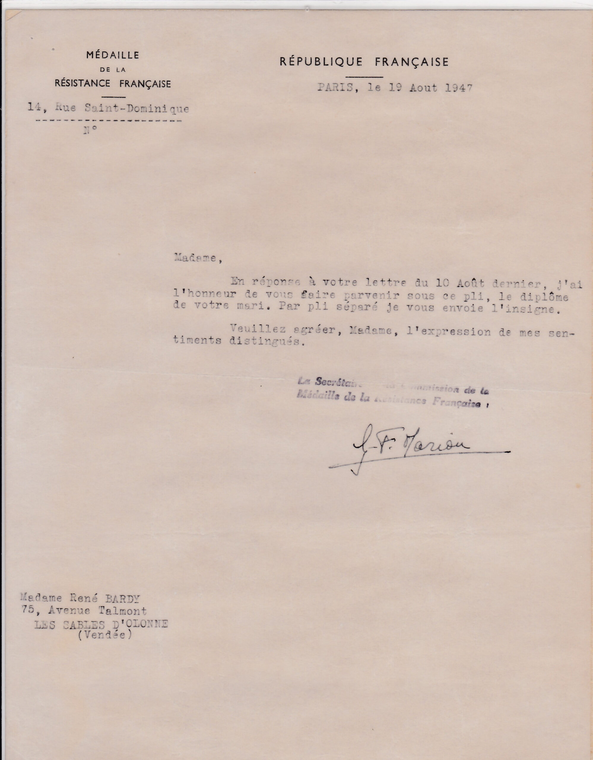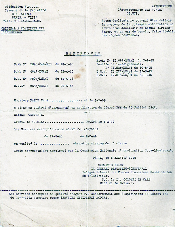 René Bardy est connu aux Sables pour son action aux Éclaireurs de France. Pendant la Première Guerre mondiale, il participe à la bataille de Verdun. Retraité en 1935, il est mobilisé en 1939 dans l’aviation en tant qu’officier observateur.